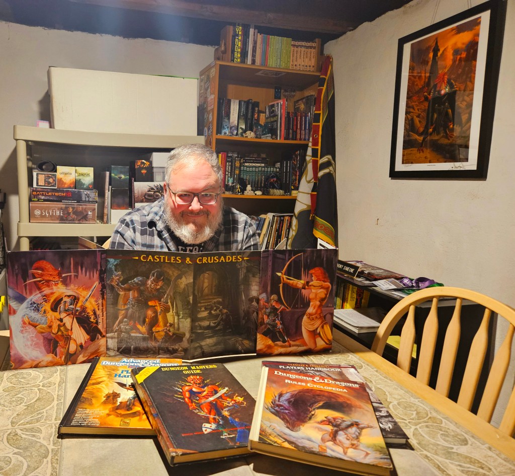 I’ve run and played a range of classic RPGs, everything from multiple versions of D&D and AD&D (and many of their retroclones) to Castles & Crusades, Rifts, Amber Diceless Roleplaying, and more. These days, I’ve been running newer games like Shadowdark from The Arcane Library and the Alien RPG from Free League Publishing, among others.